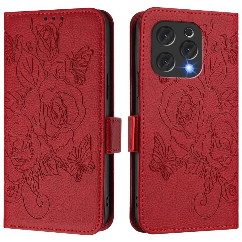 For Doogee N55 Plus Embossed Rose RFID Anti-theft Leather Phone Case(Red)