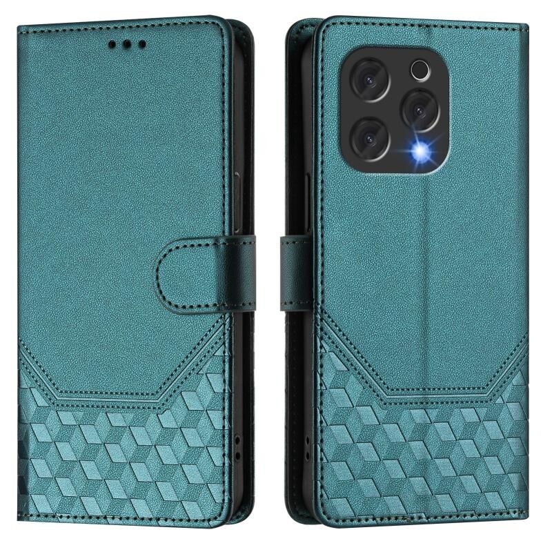 Για Doogee N55 Plus Honeycomb ανάγλυφο RFID δερμάτινη θήκη τηλεφώνου (Peacock Green)