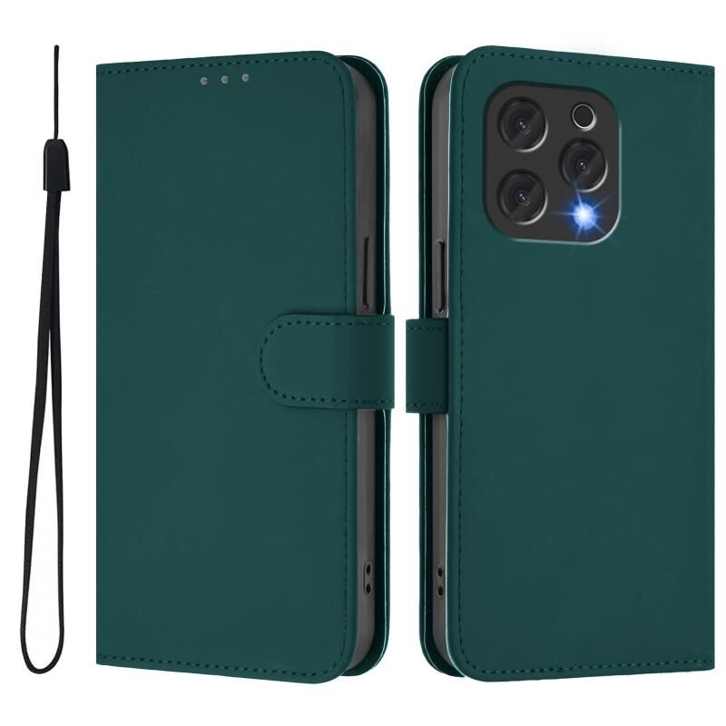 Για Doogee N55 Plus δέρμα αίσθηση Solid Color δέρμα τηλέφωνο υπόθεση με κορδόνι (Σκούρο πράσινο)