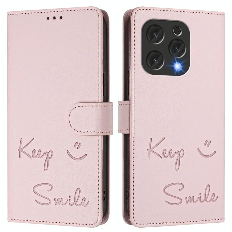 Θήκη τηλεφώνου από δέρμα με ανάγλυφο χαμόγελο για Doogee N55 Plus (ρόζ)