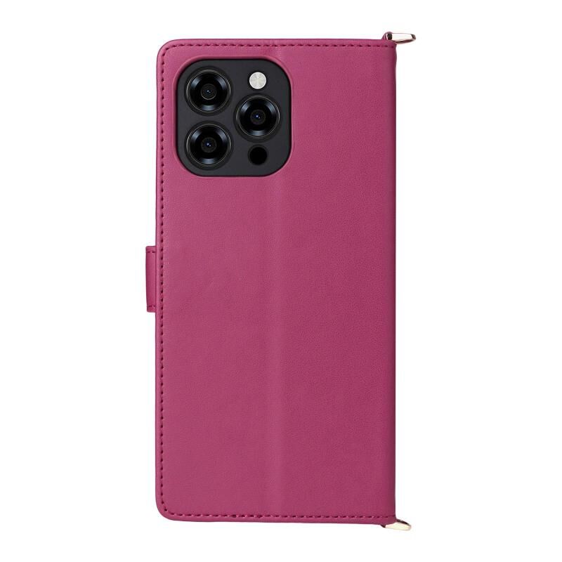 Θήκη τηλεφώνου από δέρμα για Doogee Note 58 / Note 58 Pro, πολυλειτουργική με 6 θέσεις για κάρτες και λουρί καρπού (Ροζέ κόκκινο)