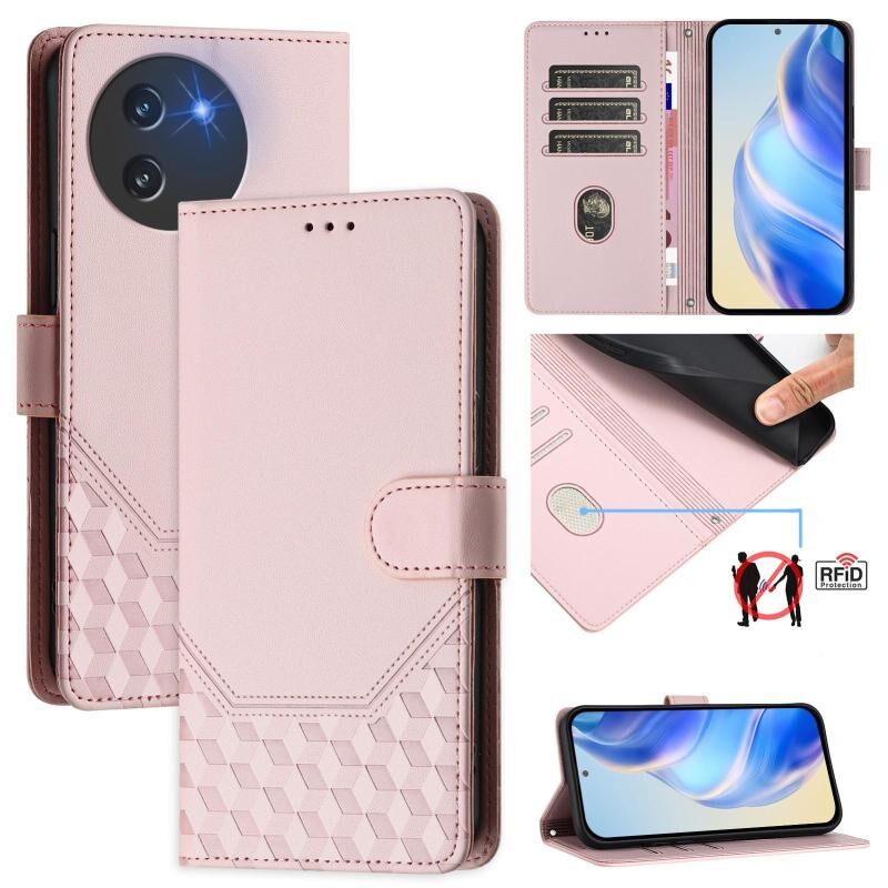 Θήκη τηλεφώνου από δέρμα RFID με ανάγλυφο κηρήθρας για Doogee Note 59 / Note 59 Pro (ρόζ)