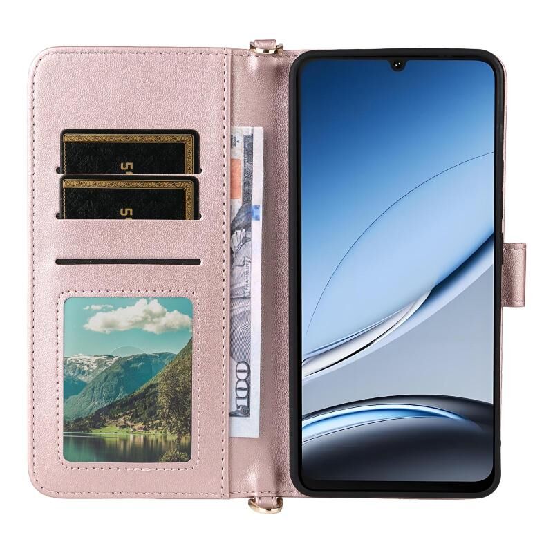 Θήκη τηλεφώνου από δέρμα 6 θέσεων για Doogee Note 59 / Note 59 Pro με λουρί καρπού (ρόζ)