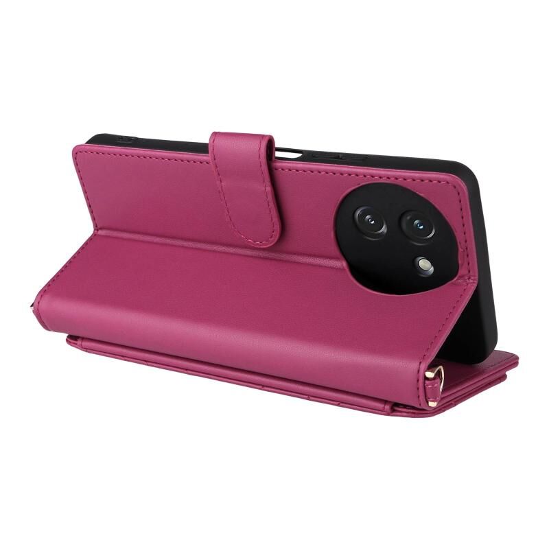Θήκη τηλεφώνου από δέρμα 6 θέσεων για Doogee Note 59 / Note 59 Pro με λουρί καρπού (Ροζέ κόκκινο)