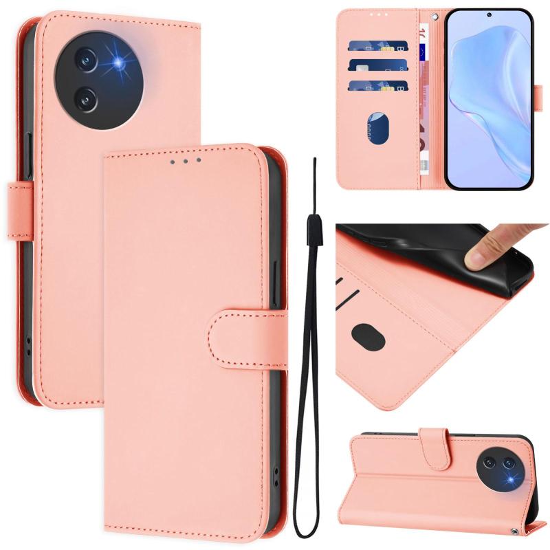 For Doogee Note 59 / Note 59 Pro Skin Feel Solid Color Leather Phone Case with Lanyard(Pink)