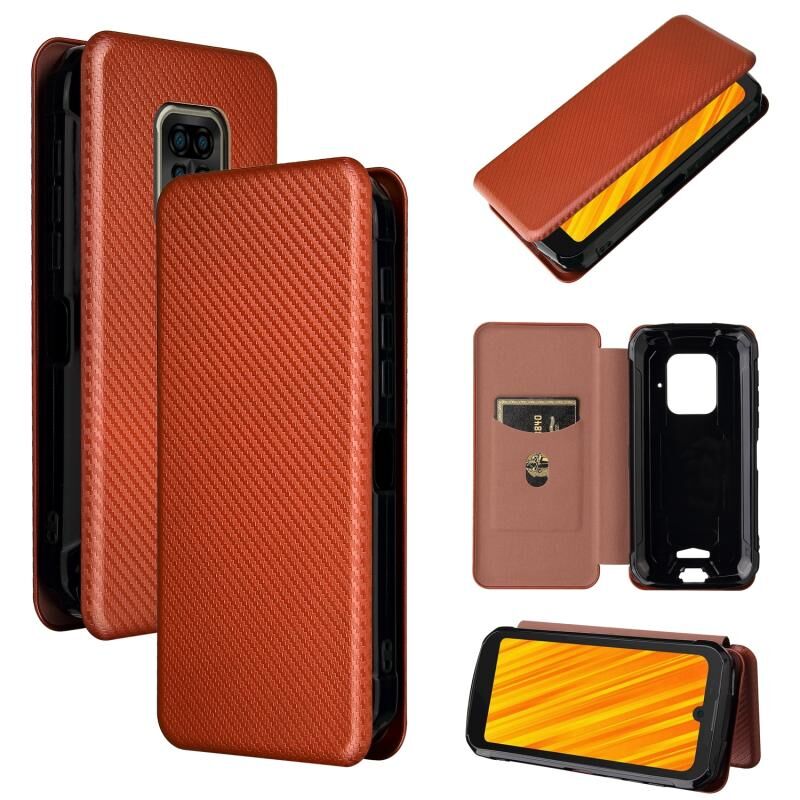 Για Doogee S59 / S59 Pro Carbon Fiber Texture Horizontal Flip TPU + PC + PU Leather Case με υποδοχή κάρτας (καφέ)