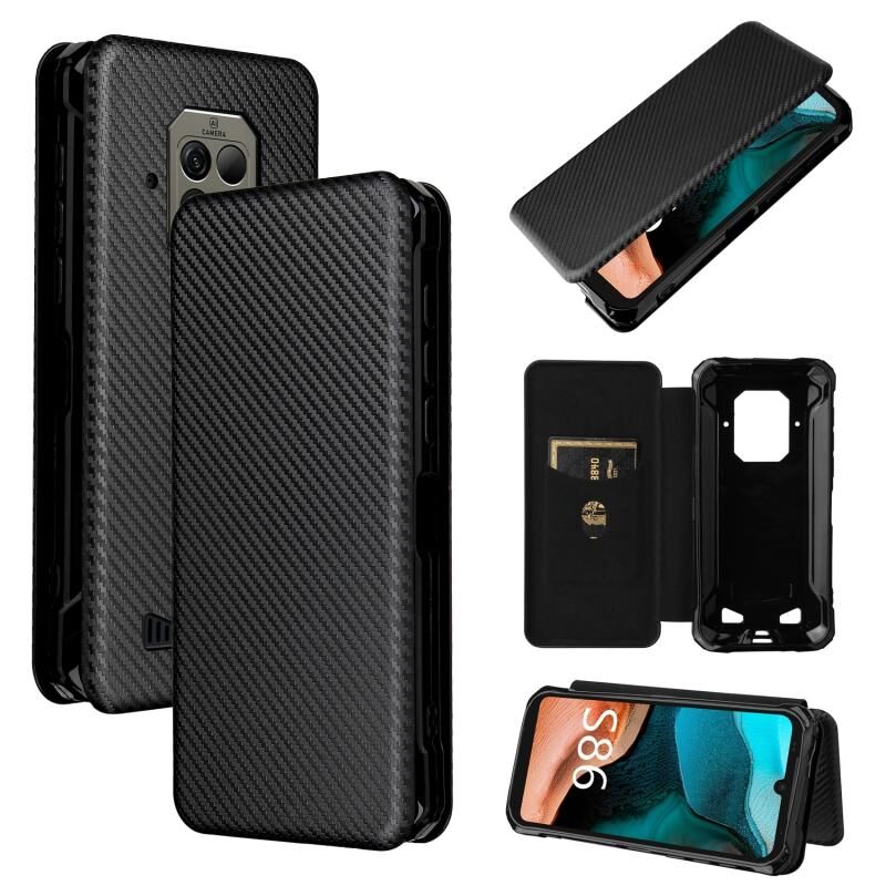 Για Doogee S86 / S86 Pro Carbon Fiber Texture Horizontal Flip TPU + PC + PU Leather Case με υποδοχή κάρτας (μαύρο)