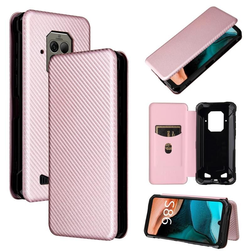 Για Doogee S86 / S86 Pro Carbon Fiber Texture Horizontal Flip TPU + PC + PU Leather Case με υποδοχή κάρτας (ροζ)