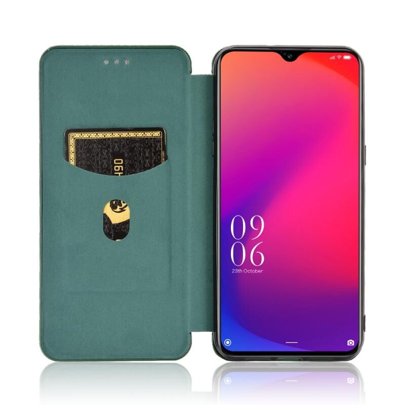 Θήκη Doogee X95 με υφή ανθρακονήματος, οριζόντια, αναδιπλούμενη από TPU + PC + Δερματίνη PU με υποδοχή κάρτας & κορδόνι (Μπλε)