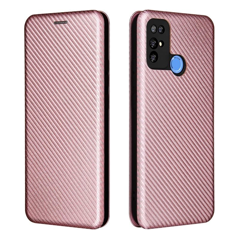 Θήκη Doogee X96 Pro με υφή ανθρακονήματος, οριζόντια, αναδιπλούμενη, από TPU + PC + Δερματίνη PU με θήκη για κάρτες (ρόζ)