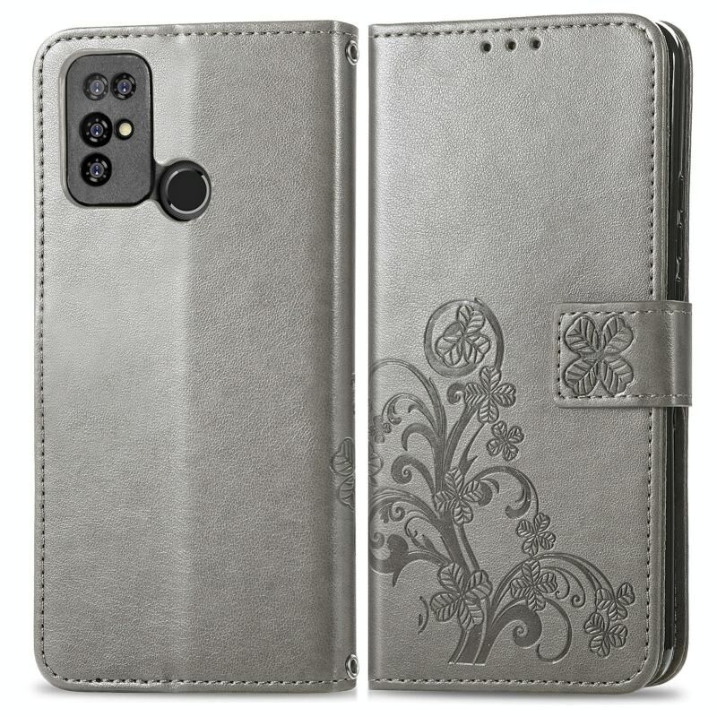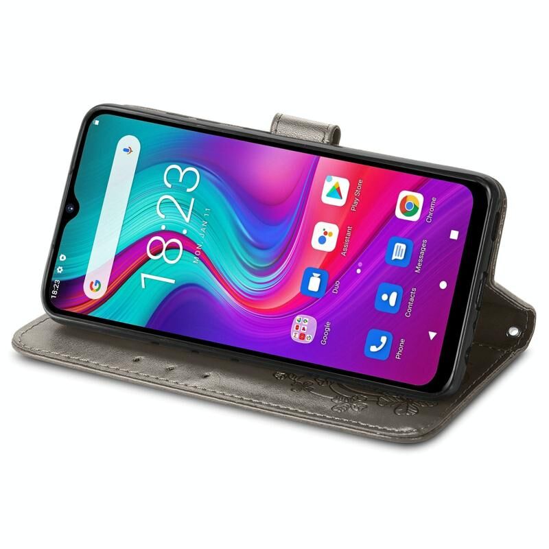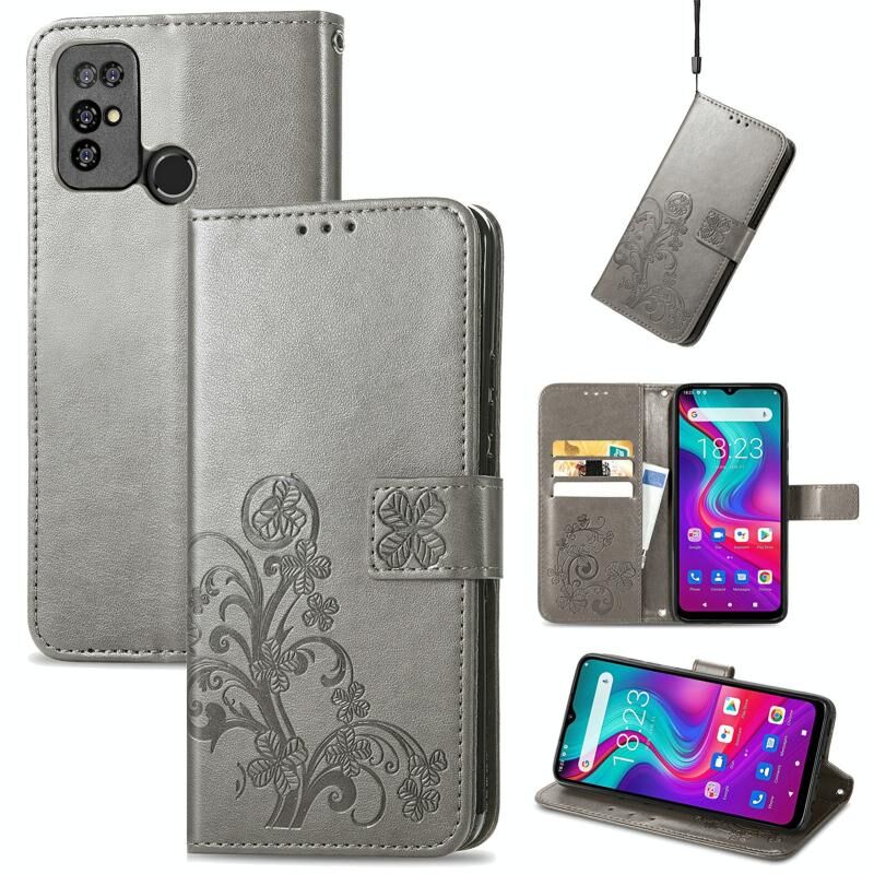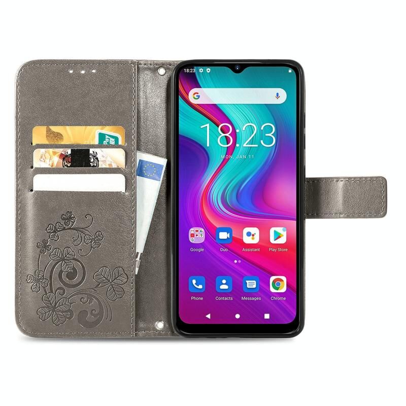 Θήκη δερμάτινη προστασίας κινητού τηλεφώνου Doogee X96 Pro με κουμπωτό κούμπωμα σε σχήμα τριφυλλιού, θηλιά, υποδοχή κάρτας, λειτουργία πορτοφολιού & βάσης (Γκρι)