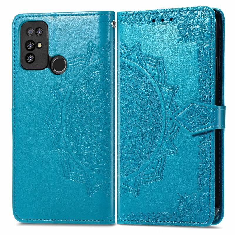 Για Doogee X96 Pro Mandala λουλούδι ανάγλυφο οριζόντια Flip δερμάτινη θήκη με θήκη & τρεις υποδοχές για κάρτες & πορτοφόλι & κορδόνι (μπλε)