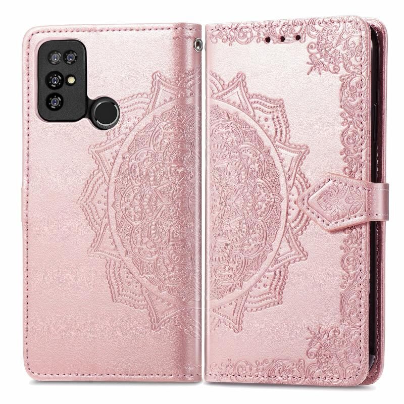 Για Doogee X96 Pro Mandala λουλούδι ανάγλυφο οριζόντια Flip δερμάτινη θήκη με θήκη & τρεις υποδοχές για κάρτες & πορτοφόλι & κορδόνι (Rose Gold)