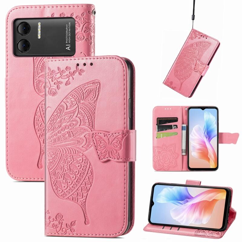 Θήκη τηλεφώνου από δέρμα με ανάγλυφο σχέδιο λουλουδιών και πεταλούδας για DOOGEE X98 Pro / X98 (ρόζ)