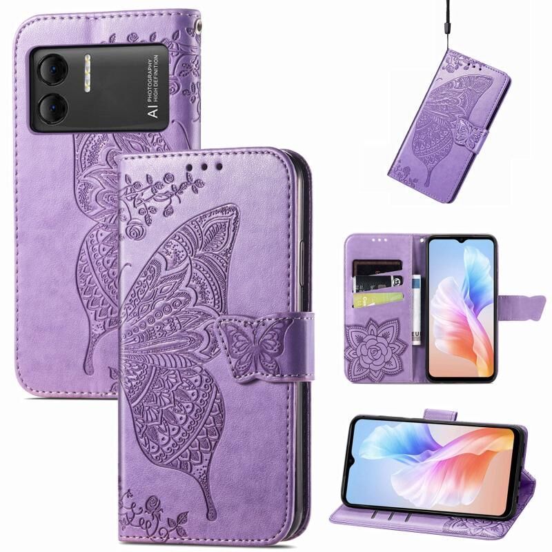 Θήκη τηλεφώνου από δέρμα με ανάγλυφο σχέδιο λουλουδιών και πεταλούδας για DOOGEE X98 Pro / X98 (Μωβ)