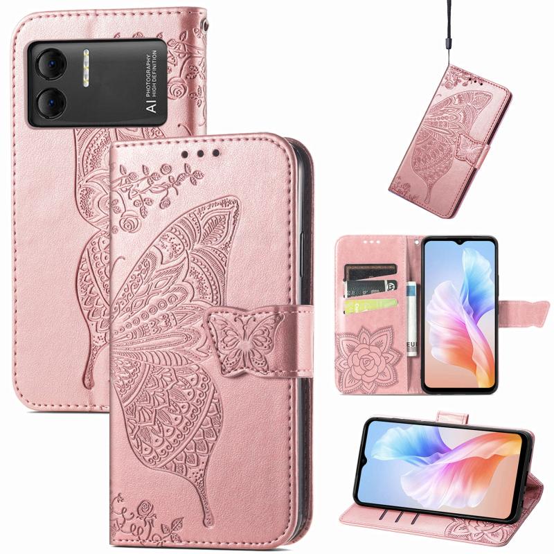 For DOOGEE X98 Pro / X98 Butterfly Love Flower Embossed Leather Phone Case(Rose Gold)