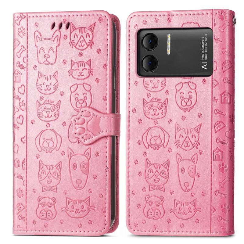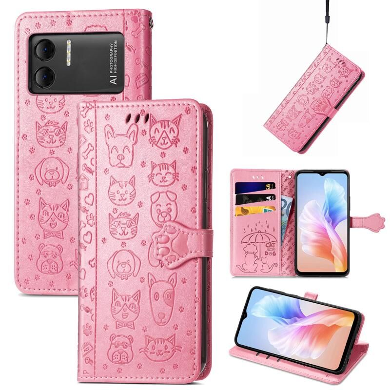 Θήκη τηλεφώνου από δέρμα με ανάγλυφο σχέδιο γάτας και σκύλου για DOOGEE X98 Pro / X98 (ρόζ)
