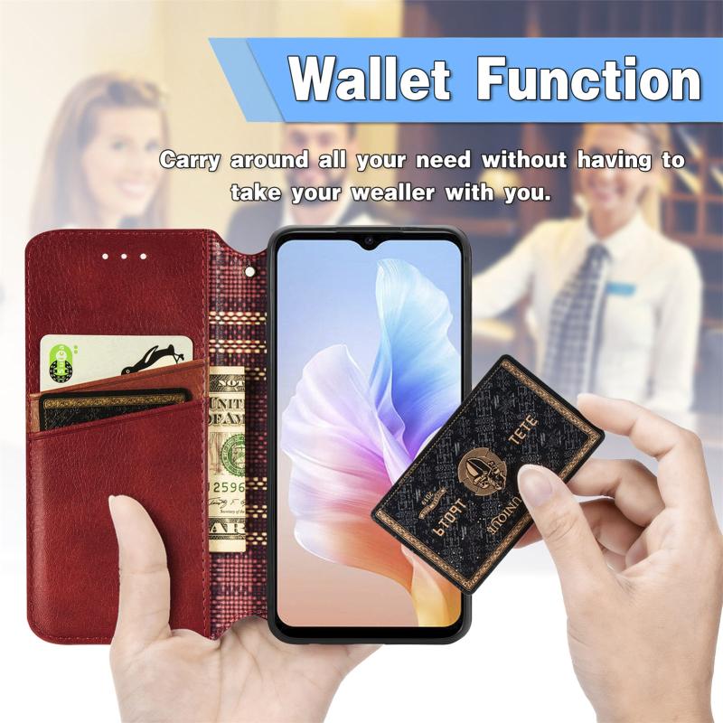 Θήκη Δερμάτινη Μαγνητική με Κυβικό Σχέδιο για DOOGEE X98 Pro / X98 (Κόκκινο)