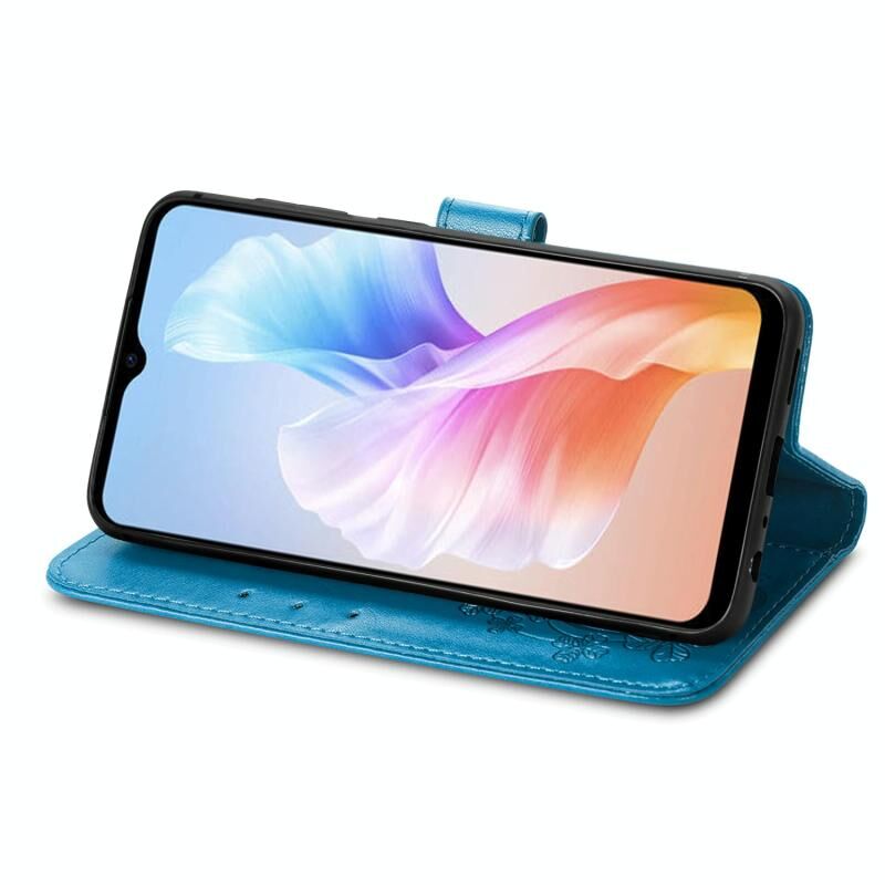 Για DOOGEE X98 Pro / X98 τετράφυλλο κούμπωμα ανάγλυφη αγκράφα δερμάτινη θήκη τηλεφώνου (Μπλε)