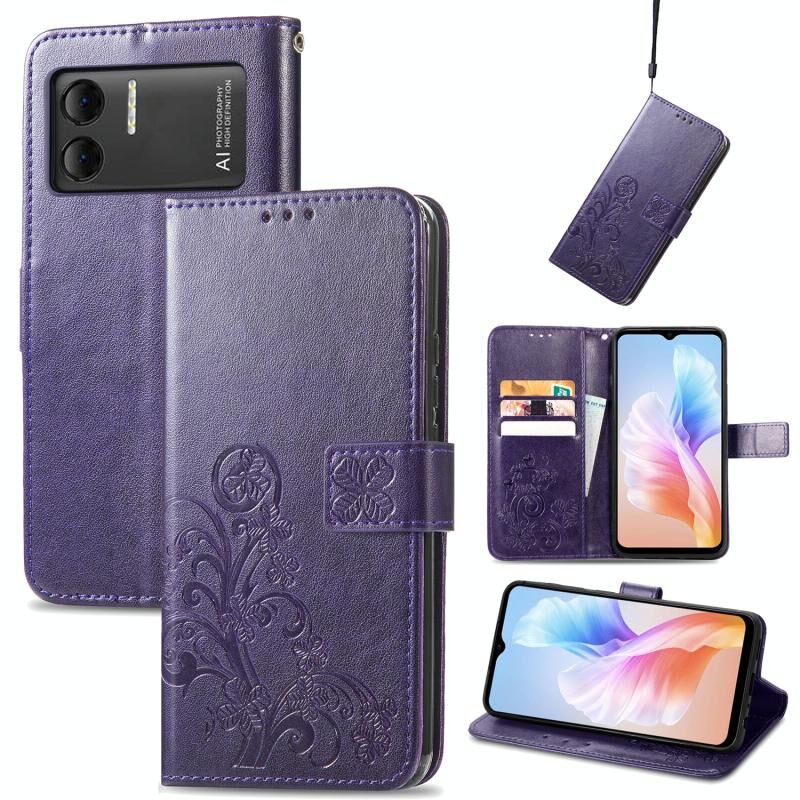 Για DOOGEE X98 Pro / X98 τετράφυλλο κούμπωμα ανάγλυφη αγκράφα δερμάτινη θήκη τηλεφώνου (Μωβ)