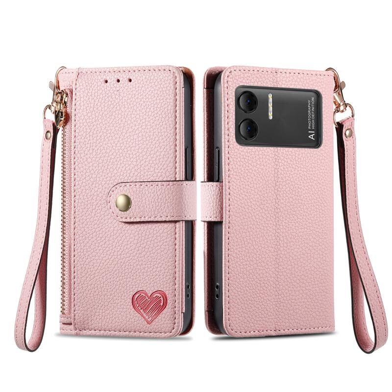 Για DOOGEE X98 Pro / X98 αγάπη φερμουάρ Lanyard δερμάτινη θήκη τηλεφώνου (ρόζ)
