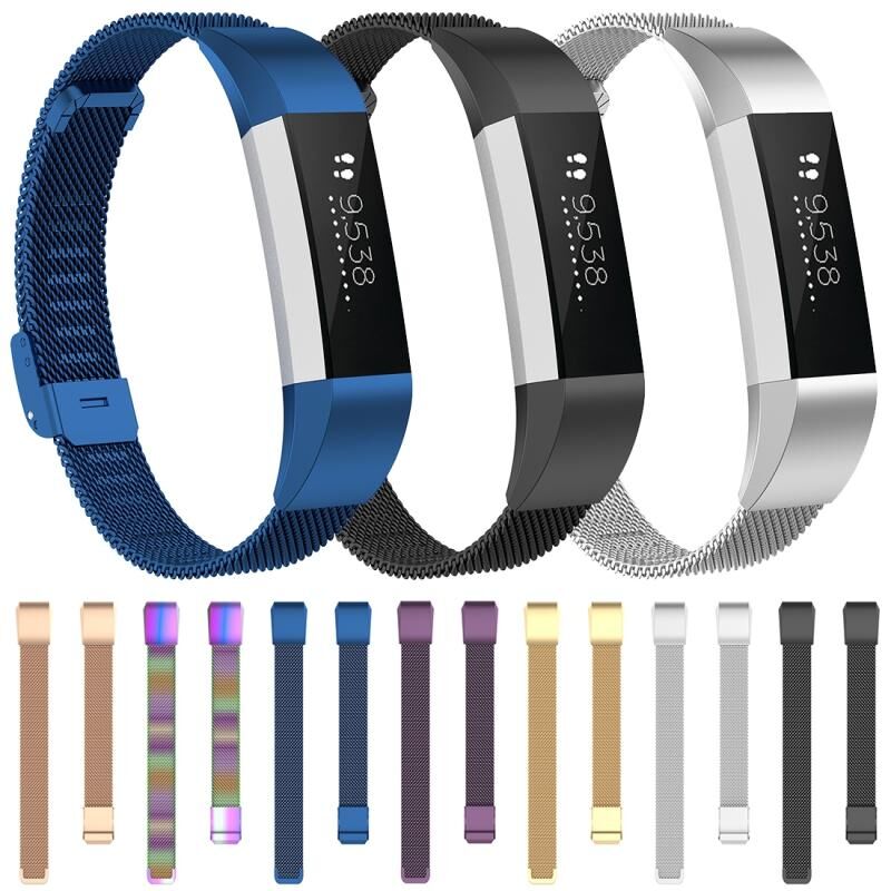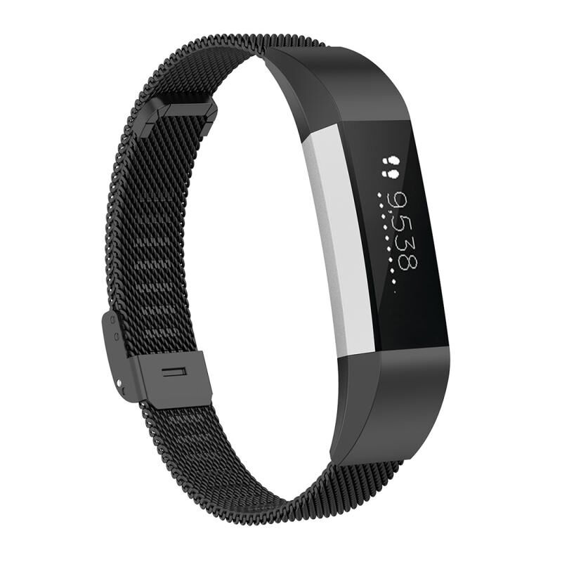 For Fitbit Alta / Alta HR / ACE Watch Button Mesh Metal Replacement Strap Watchband, Size:S(Black)