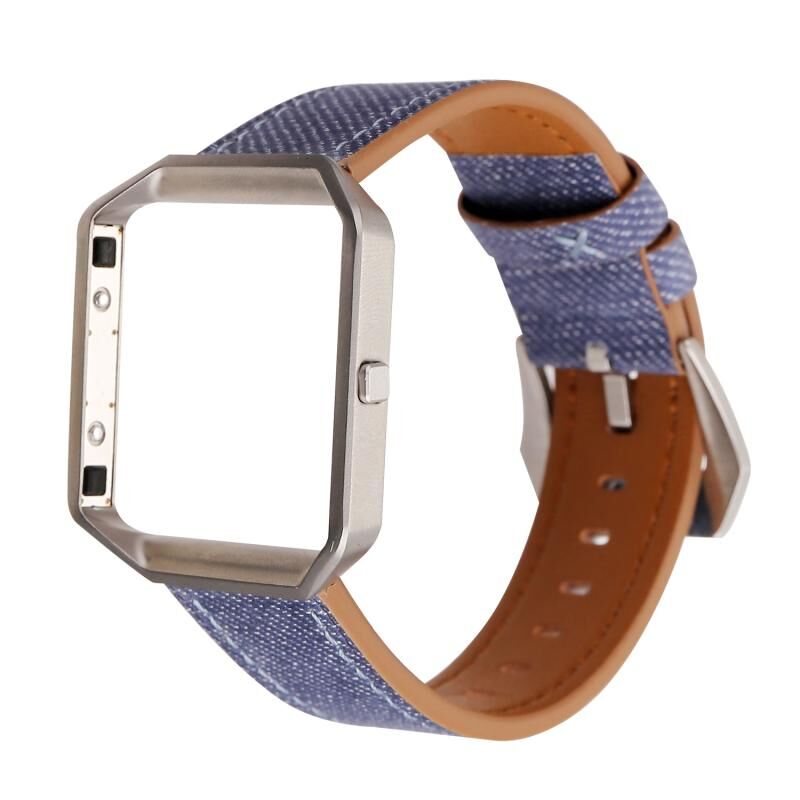 For Fitbit Blaze Cowboy Texture Leather Watch Band(Dark Blue)