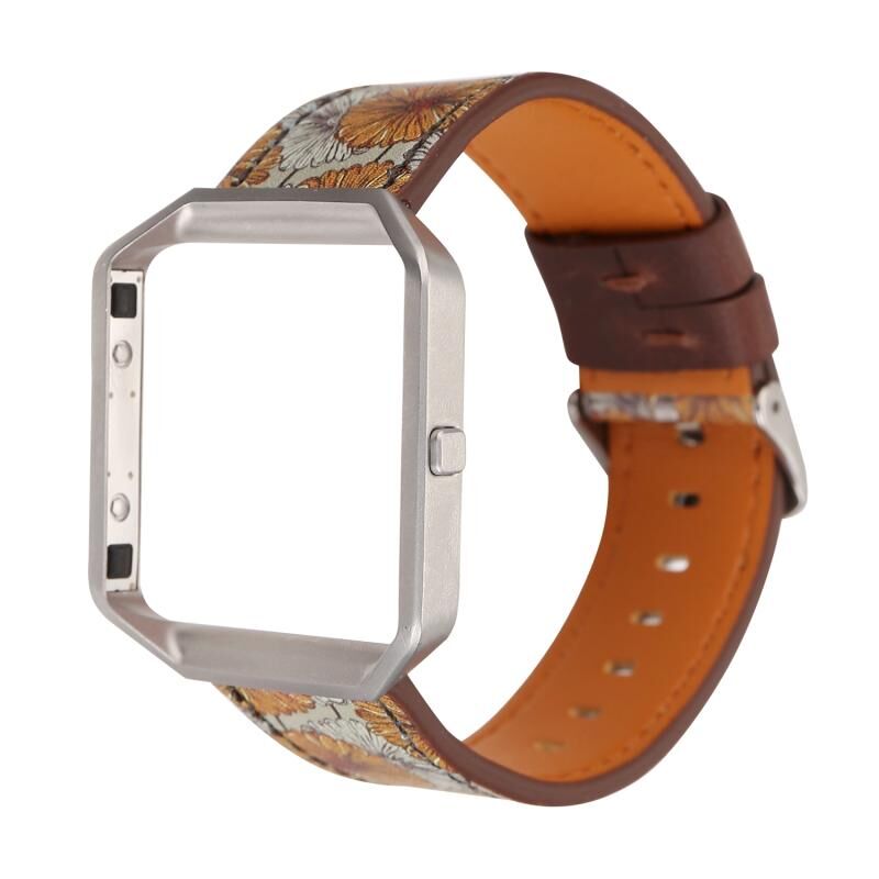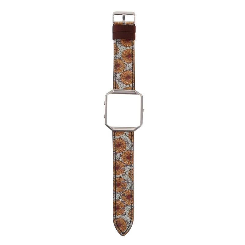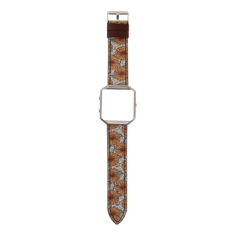 Για Fitbit Blaze Retro Flowers Σειρά Δερμάτινο Λουρί Ρολογιού (Χρυσάνθεμο)