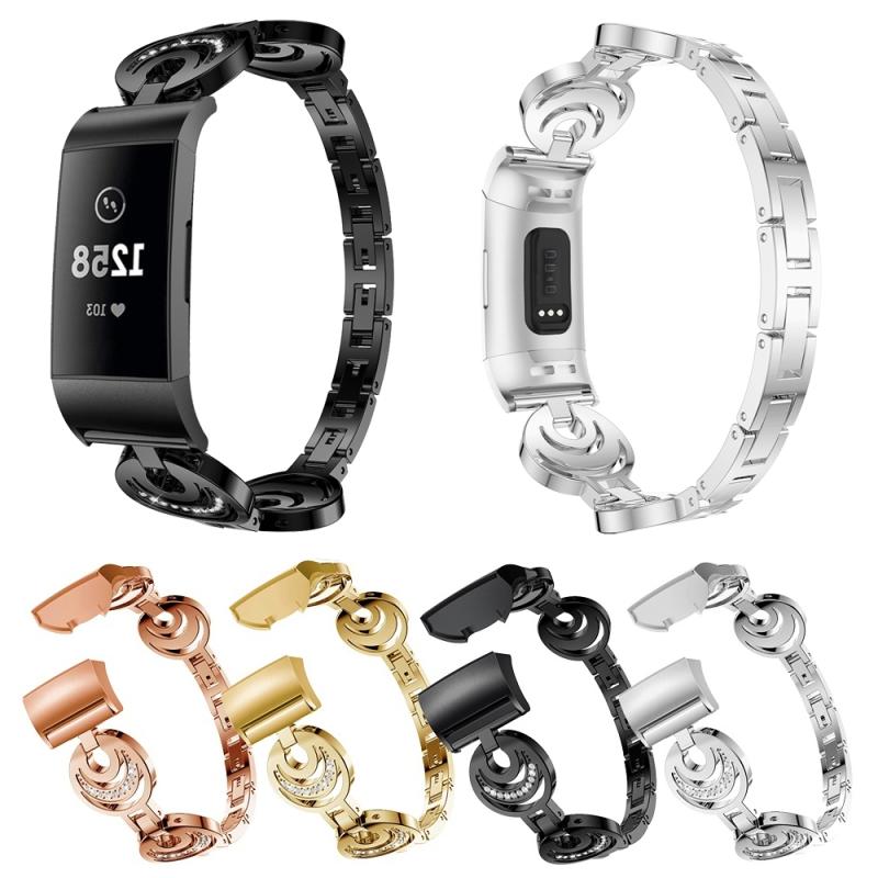For Fitbit Charge 3 / 4 Sun Moon Star Diamond Metal Watch Band(Gold)