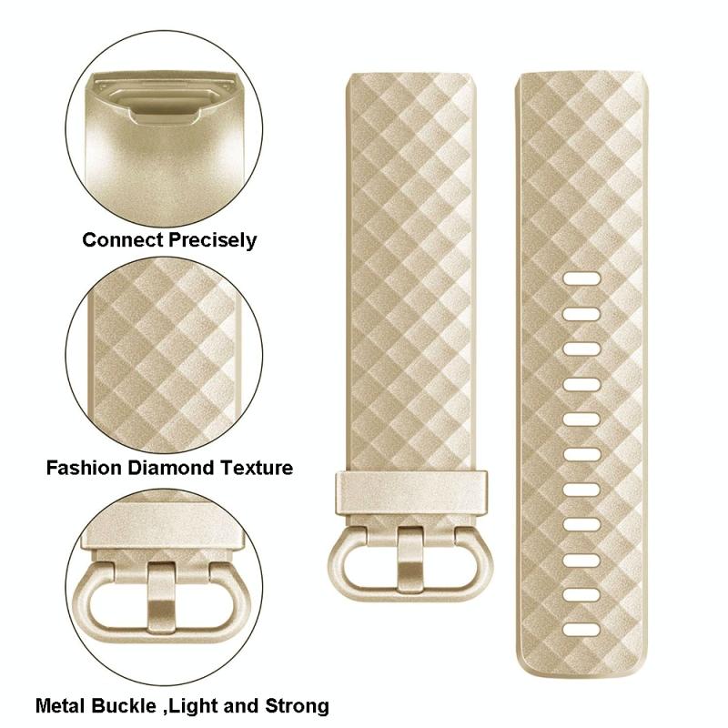 For FITBIT Charge 3 Official Pattern Metallic Watch Band(Champagne Gold)