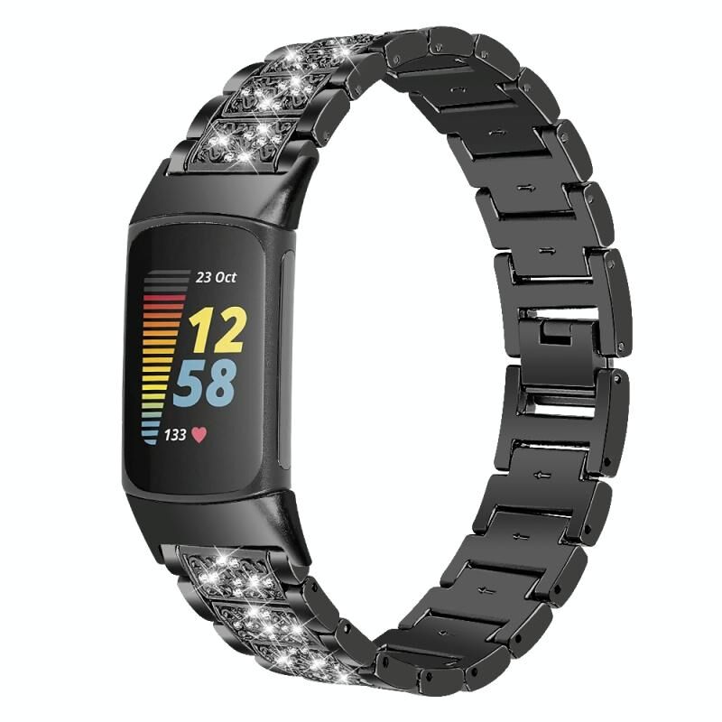 For Fitbit Charge 5 Diamond Stainless Steel Watch Band(Black)