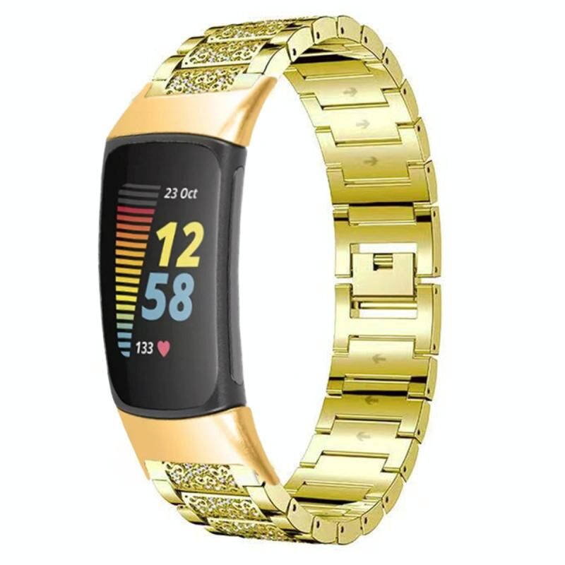 For Fitbit Charge 5 Diamond Stainless Steel Watch Band(Gold)
