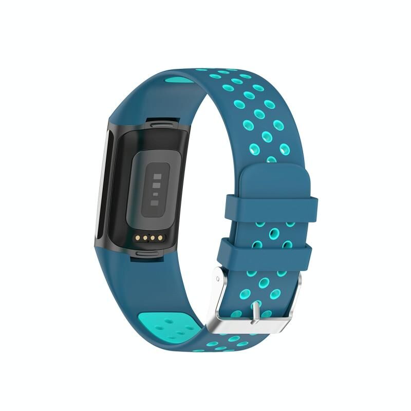 Για Fitbit Charge 5 Διπλό χρώμα μεταλλική πόρπη τρύπα σιλικόνης ρολόι μπάντα (μπλε πράσινο)