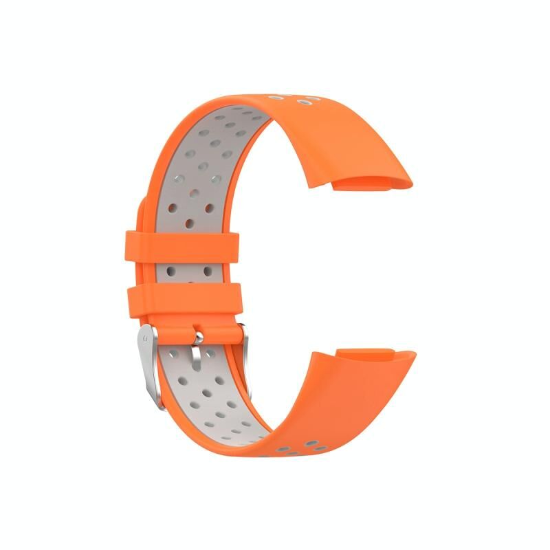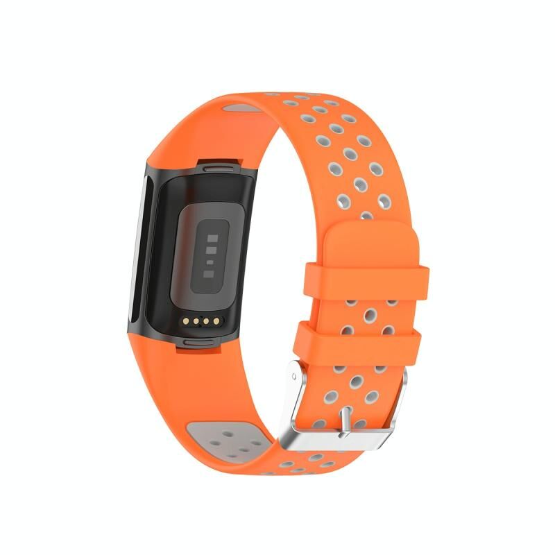Για Fitbit Charge 5 Διπλό χρώμα μεταλλική πόρπη τρύπα σιλικόνης ρολόι μπάντα (πορτοκαλί γκρι)