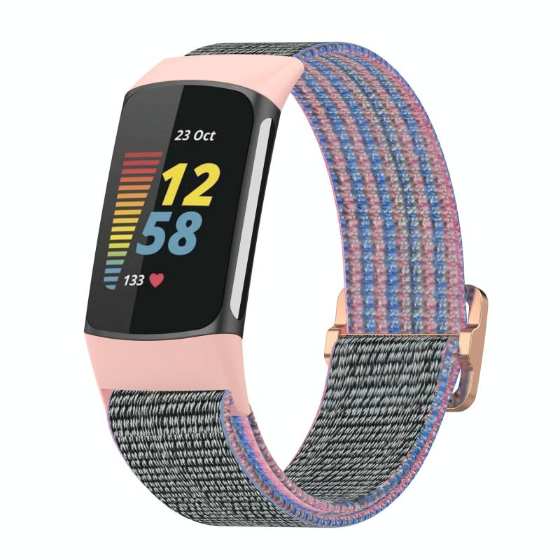 For Fitbit Charge 5 Elastic Nylon Braid Watch Band(Pink)
