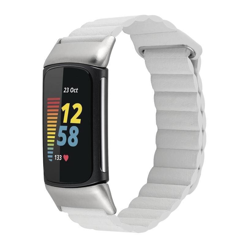 Για Fitbit Charge 5 Μαγνητικός βρόχος δερμάτινο λουράκι ρολογιού (λευκό)