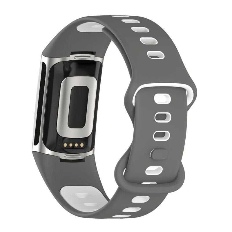 For Fitbit Charge 5 Two-color Silicone Watch Band(Grey White)