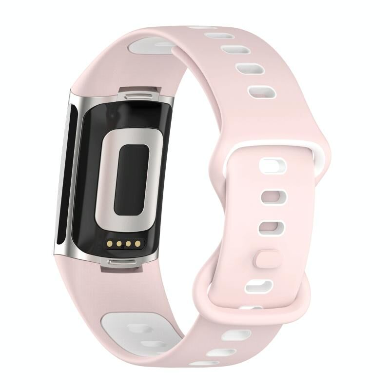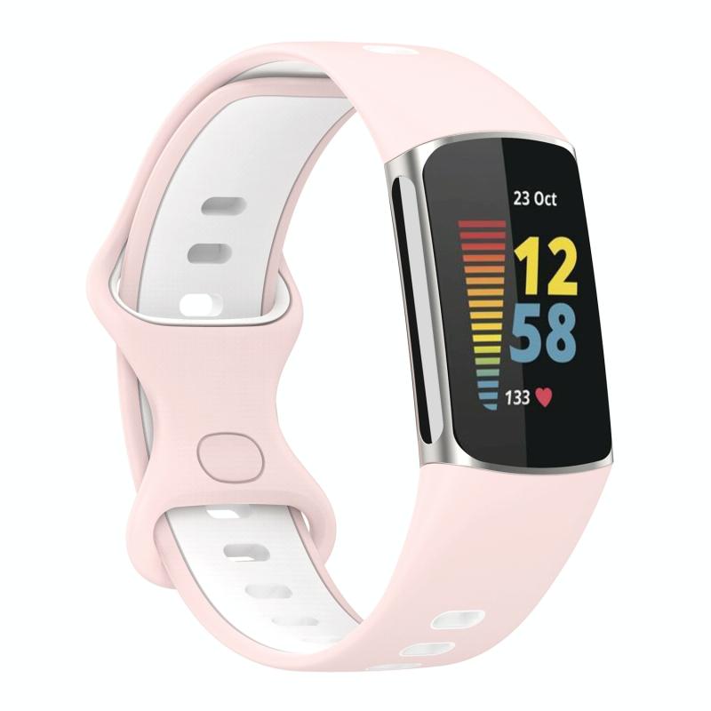 For Fitbit Charge 5 Two-color Silicone Watch Band(Pink White)