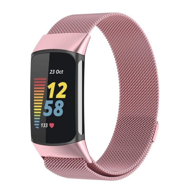 For Fitbit Charge 6 / 5 xDfind Milanese Magnetic Metal Watch Band, Size:L(Rose Pink) (xDfind)