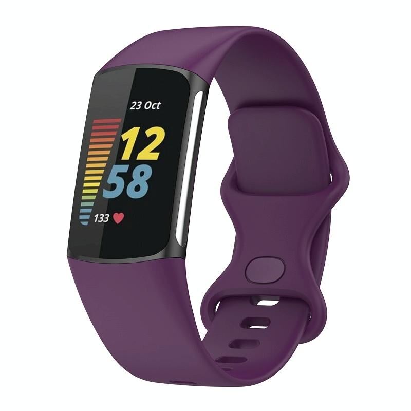 Για Fitbit Charge 6 στερεό χρώμα πεταλούδα πόρπη σιλικόνης ρολόι μπάντα, μέγεθος: L μέγεθος (σκούρο μωβ)