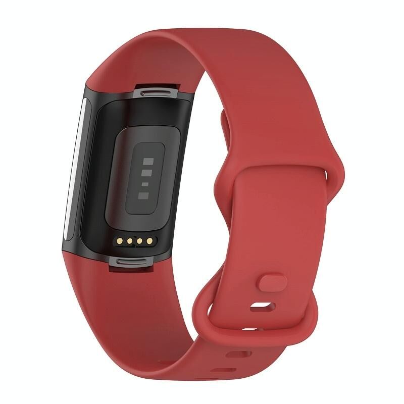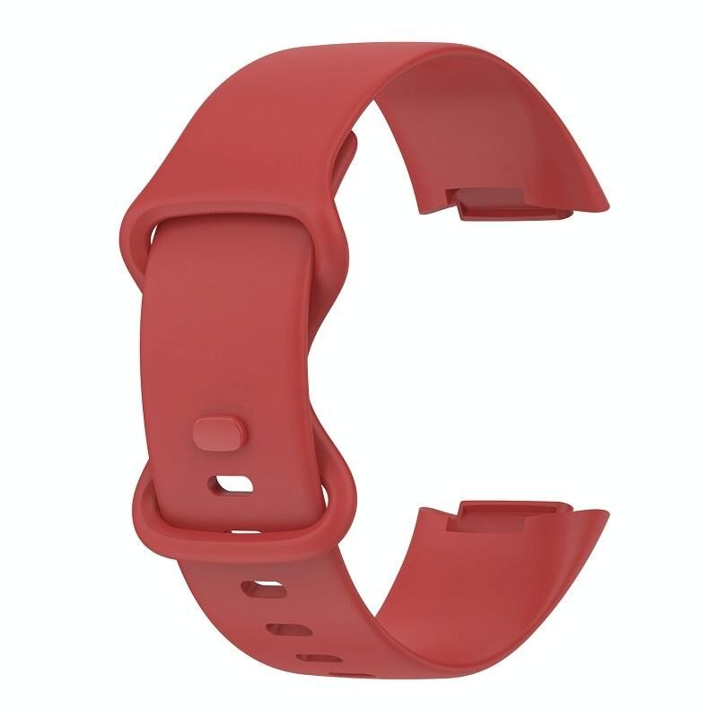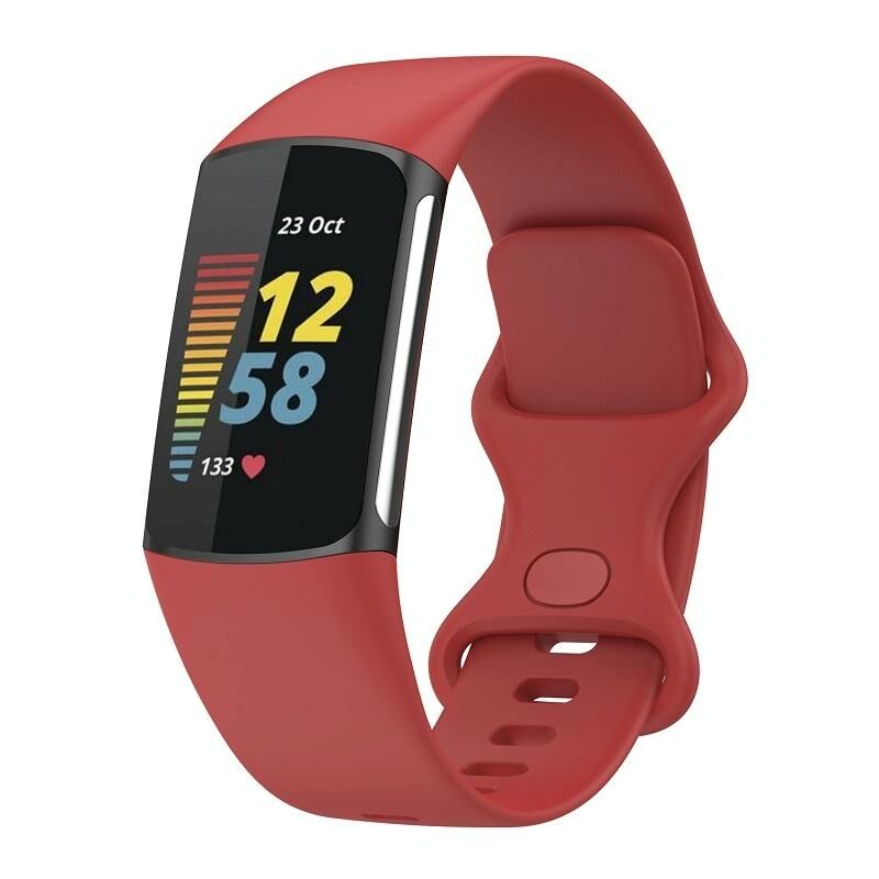 For Fitbit Charge 6 Solid Color Butterfly Buckle Silicone Watch Band, Size:S Size(Red)