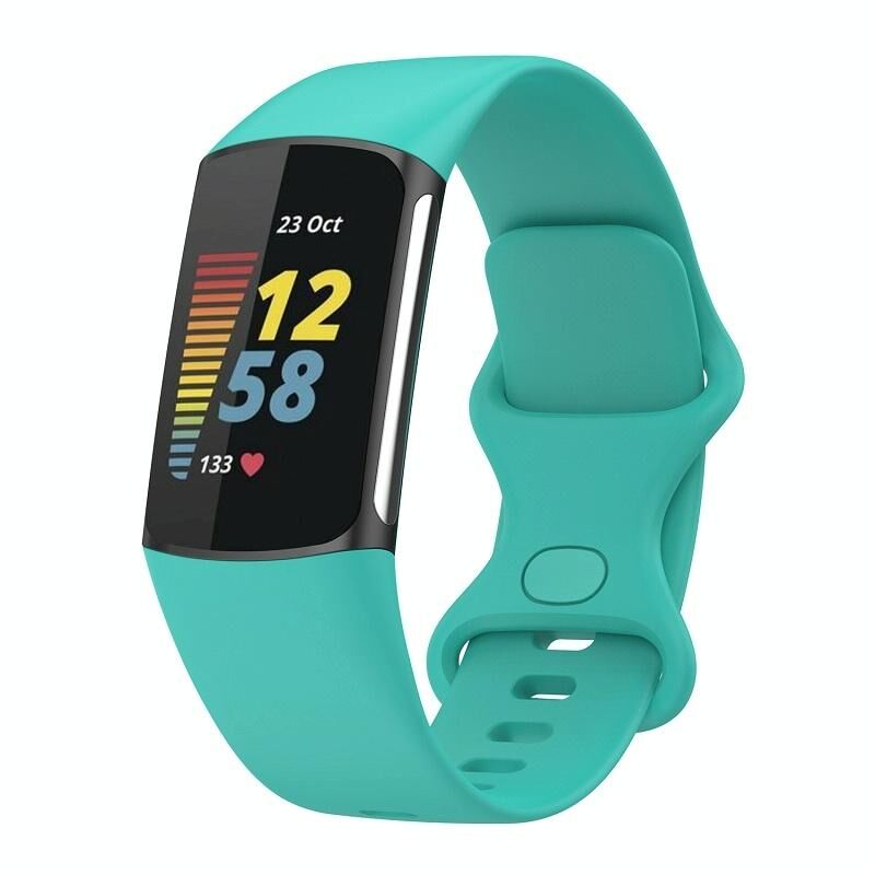 Για Fitbit Charge 6 στερεό χρώμα πεταλούδα πόρπη σιλικόνης ρολόι μπάντα, μέγεθος: S μέγεθος (Teal πράσινο)