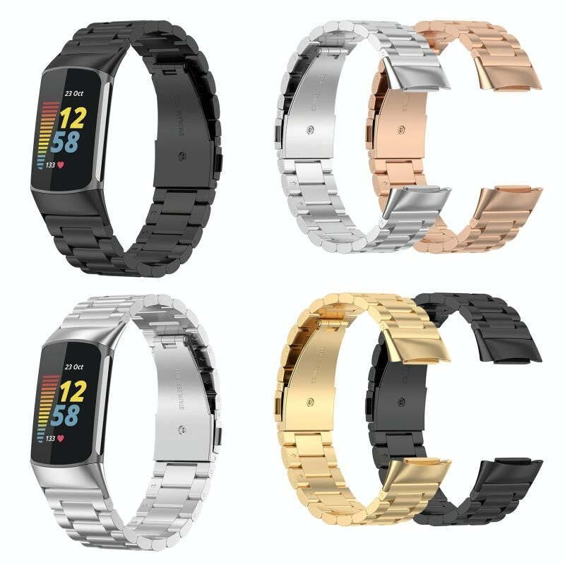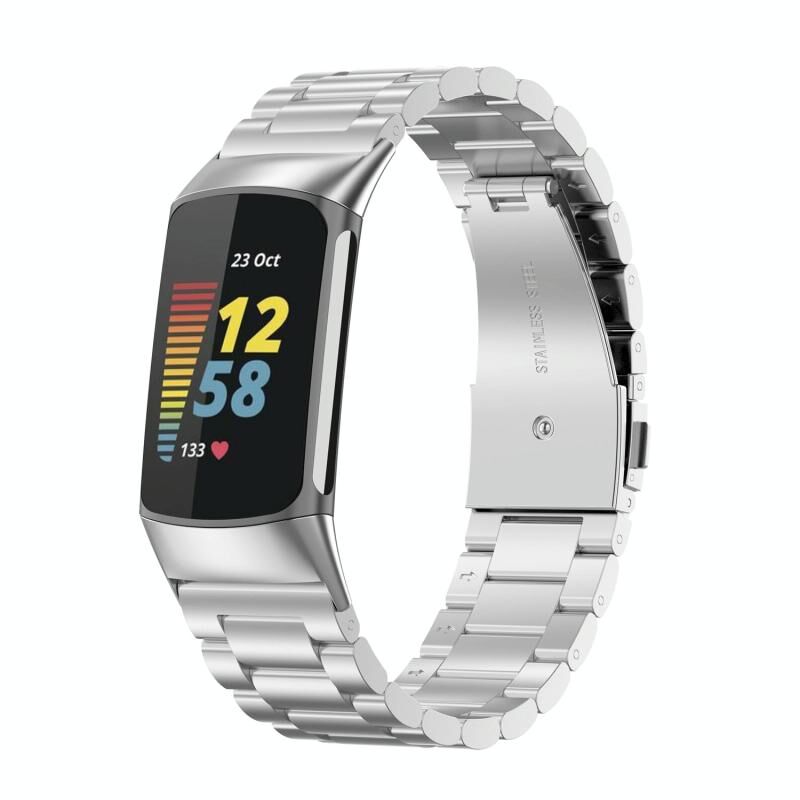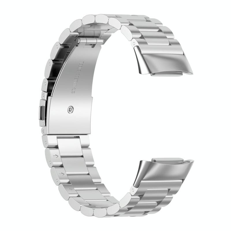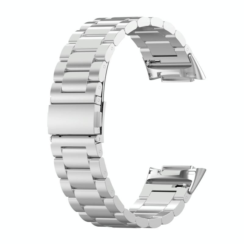 Για Fitbit Charge 6 Τρεις χάντρες από ανοξείδωτο χάλυβα μεταλλική ζώνη ρολογιού (ασημί)
