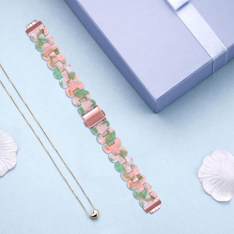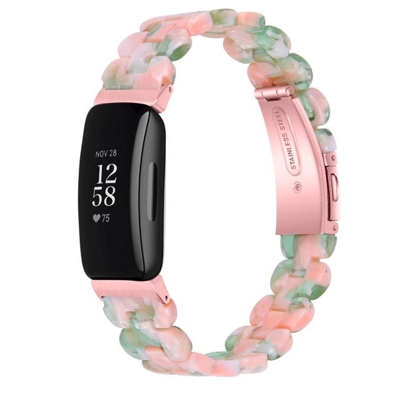 For Fitbit Inspire 2 / Inspire Oval Resin Watch Band(Pink Green Flower)