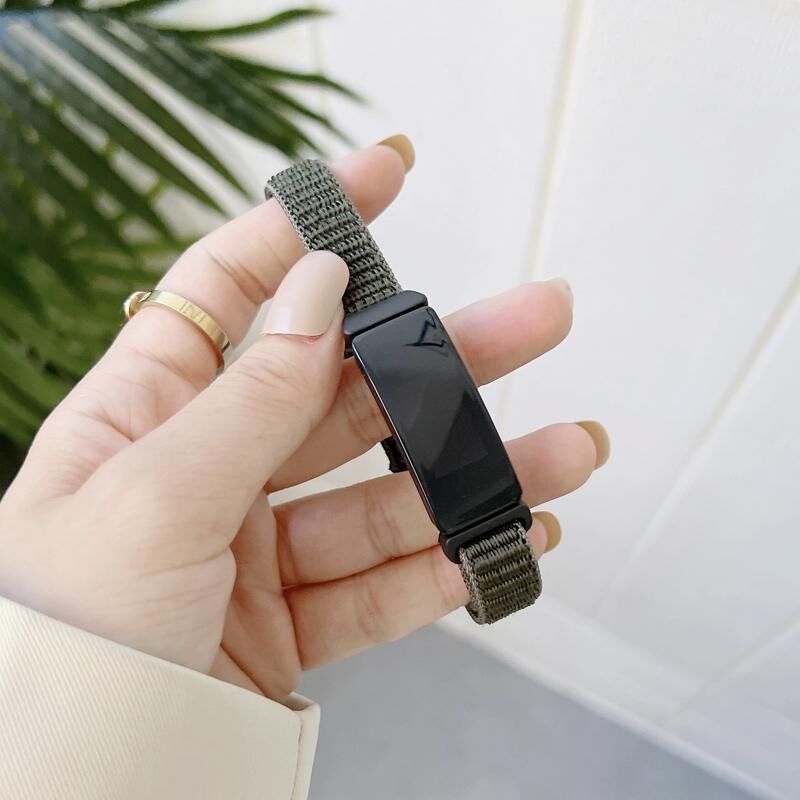 For Fitbit Inspire 2 Nylon Loop Strap Watch Band(Army Green)