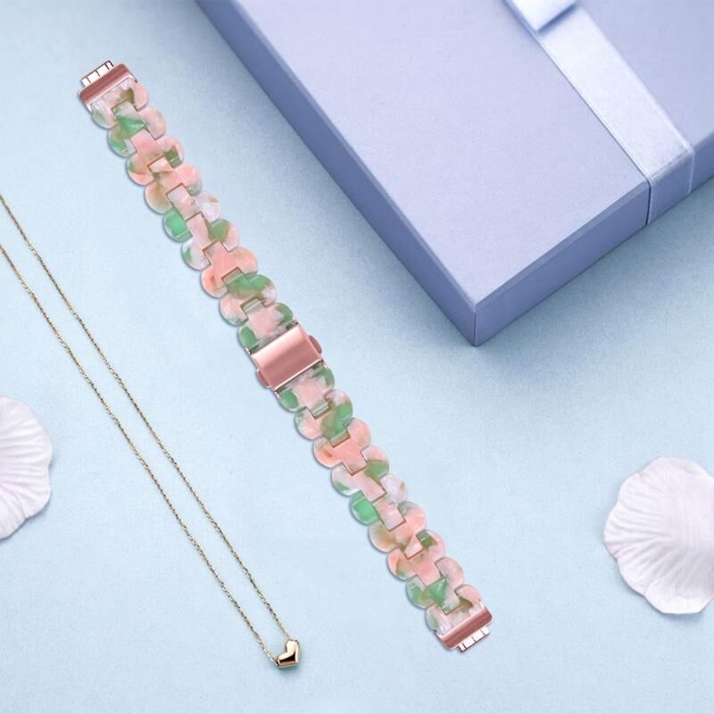 Για Fitbit Inspire 3 Οβάλ ρητίνη αντικατάστασης ρολόι μπάντα ρολογιού (ροζ πράσινο λουλούδι)