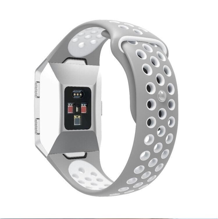 Για Fitbit Ionic Αναπνεύσιμο δίχρωμο λουράκι ρολογιού σιλικόνης (γκρι λευκό)