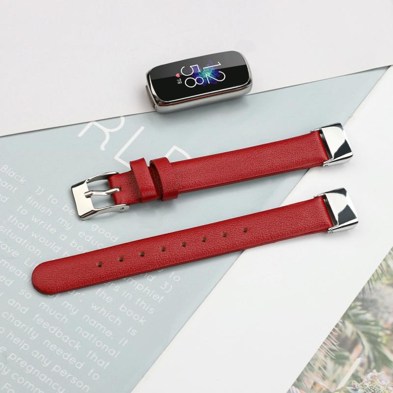 For Fitbit Luxe Leather Watch Band, Size:S(Red)