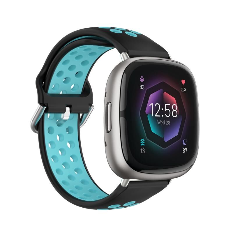 Για Fitbit Sense 2 Δύο-χρώμα διάτρητο αναπνεύσιμο λουράκι σιλικόνης ρολόι (Μαύρο + Teal)