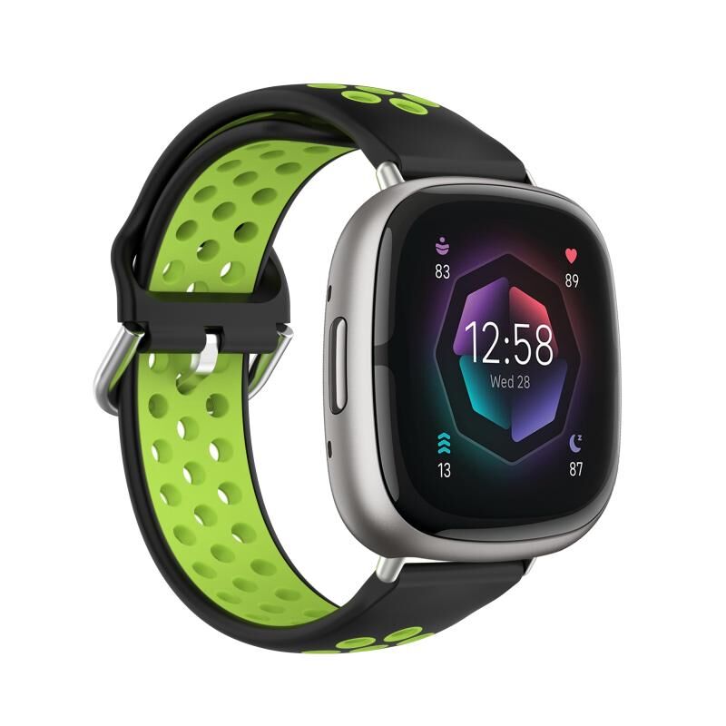 Για Fitbit Sense Δύο-χρώμα διάτρητο αναπνεύσιμο λουράκι ρολογιού σιλικόνης (Μαύρο+Lime)